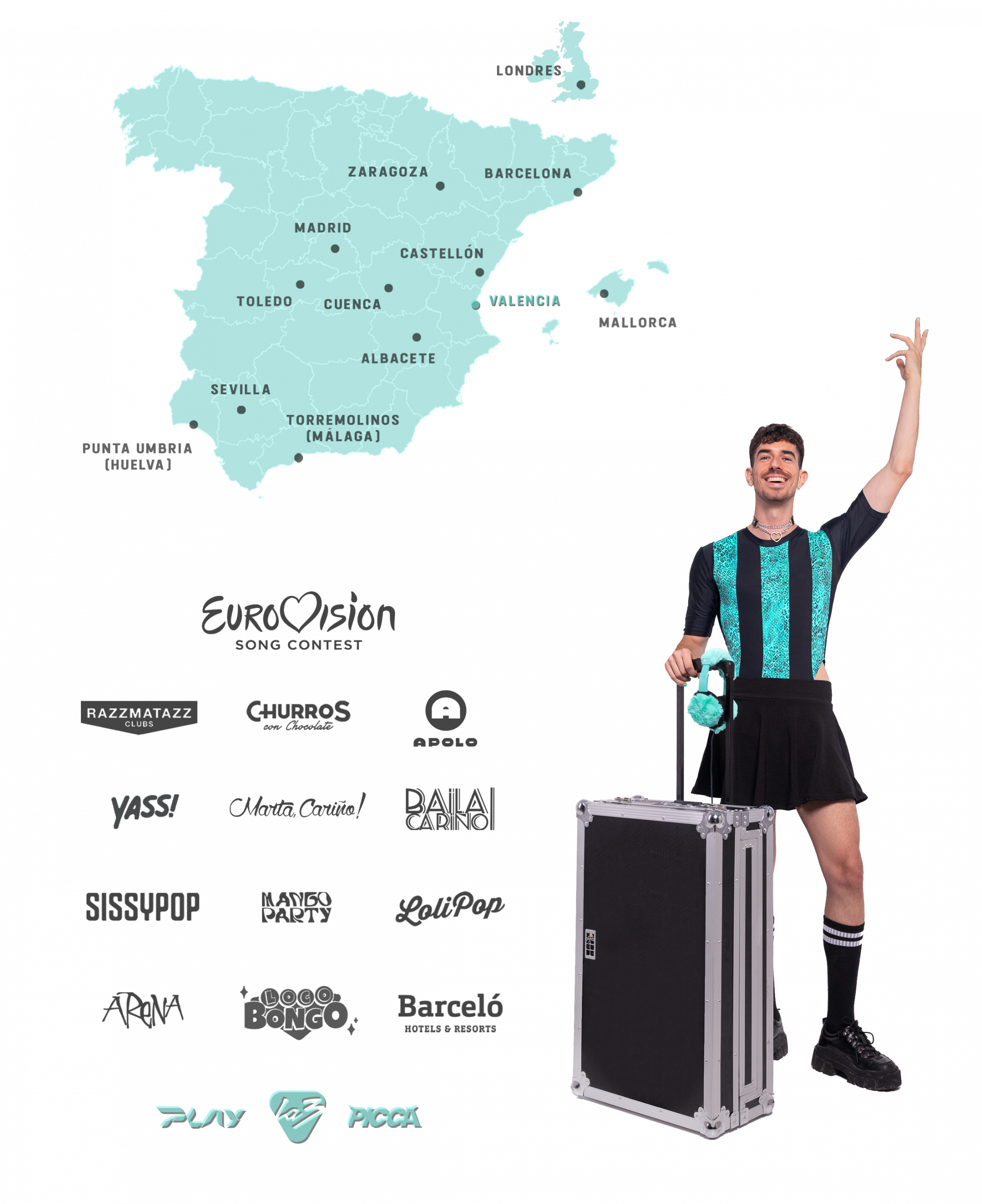 Trabajo en clubs, fiestas privadas, eventos de marca, celebraciones y festivales. Mi show está pensado para un público que quiere divertirse, bailar y cantar, especialmente en eventos con ambiente diverso e inclusivo.